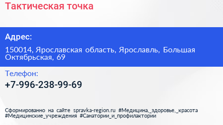 Тактическая точка по адресу 150014, Ярославская область, Ярославль, Большая Октябрьская, 69 в дальнейшем Организация, размещена в следующих категориях: