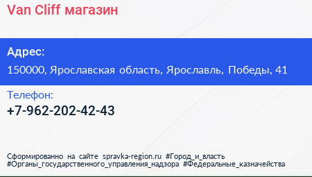 Van Cliff, магазин по адресу 150000, Ярославская область, Ярославль, Победы, 41 в дальнейшем Организация, размещена в следующих категориях: