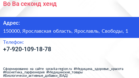 Во! Ва!, секонд-хенд по адресу 150000, Ярославская область, Ярославль, Свободы, 1 в дальнейшем Организация, размещена в следующих категориях: