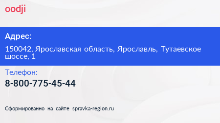 oodji по адресу 150042, Ярославская область, Ярославль, Тутаевское шоссе, 1 в дальнейшем Организация, размещена в следующих категориях: