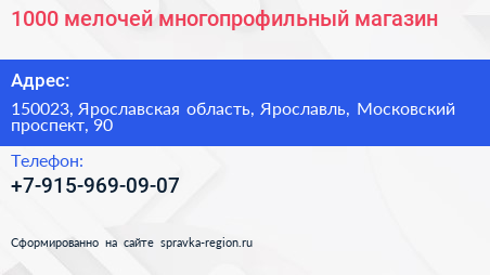 1000 мелочей, многопрофильный магазин по адресу 150023, Ярославская область, Ярославль, Московский проспект, 90 в дальнейшем Организация, размещена в следующих категориях: