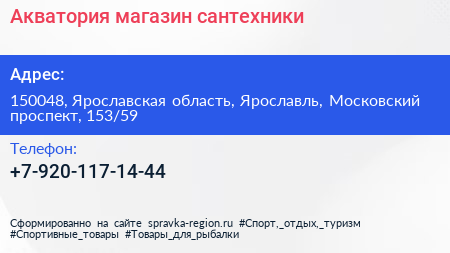 Акватория, магазин сантехники по адресу 150048, Ярославская область, Ярославль, Московский проспект, 153/59 в дальнейшем Организация, размещена в следующих категориях: