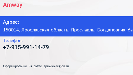 Amway по адресу 150014, Ярославская область, Ярославль, Богдановича, 6а в дальнейшем Организация, размещена в следующих категориях: