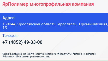 ЯрПолимер, многопрофильная компания по адресу 150044, Ярославская область, Ярославль, Промышленная, 1Б в дальнейшем Организация, размещена в следующих категориях: