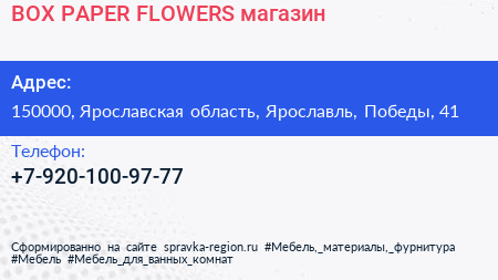 BOX & PAPER & FLOWERS, магазин по адресу 150000, Ярославская область, Ярославль, Победы, 41 в дальнейшем Организация, размещена в следующих категориях:
