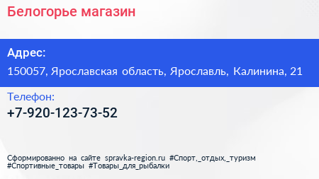 Белогорье, магазин по адресу 150057, Ярославская область, Ярославль, Калинина, 21 в дальнейшем Организация, размещена в следующих категориях: