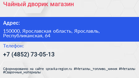Чайный дворик, магазин по адресу 150000, Ярославская область, Ярославль, Республиканская, 64 в дальнейшем Организация, размещена в следующих категориях: