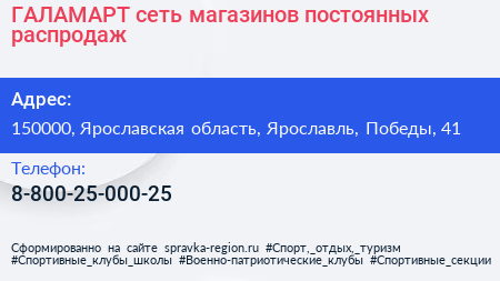 ГАЛАМАРТ, сеть магазинов постоянных распродаж по адресу 150000, Ярославская область, Ярославль, Победы, 41 в дальнейшем Организация, размещена в следующих категориях: