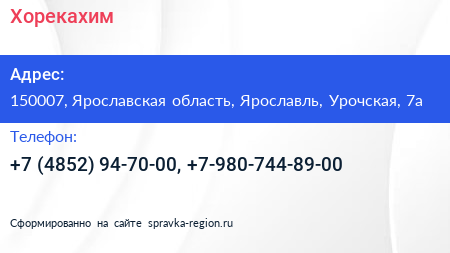 Хорекахим по адресу 150007, Ярославская область, Ярославль, Урочская, 7а в дальнейшем Организация, размещена в следующих категориях: