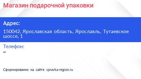 Магазин подарочной упаковки по адресу 150042, Ярославская область, Ярославль, Тутаевское шоссе, 1 в дальнейшем Организация, размещена в следующих категориях: