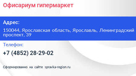 Офисариум, гипермаркет по адресу 150044, Ярославская область, Ярославль, Ленинградский проспект, 39 в дальнейшем Организация, размещена в следующих категориях: