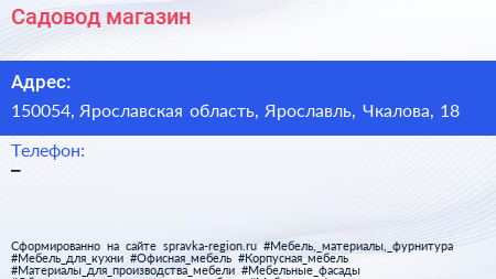 Садовод, магазин по адресу 150054, Ярославская область, Ярославль, Чкалова, 18 в дальнейшем Организация, размещена в следующих категориях: