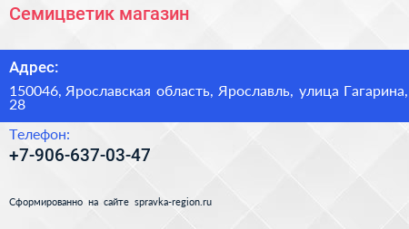 Семицветик, магазин по адресу 150046, Ярославская область, Ярославль, улица Гагарина, 28 в дальнейшем Организация, размещена в следующих категориях: