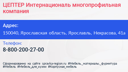 ЦЕПТЕР Интернациональ, многопрофильная компания по адресу 150040, Ярославская область, Ярославль, Некрасова, 41а в дальнейшем Организация, размещена в следующих категориях: