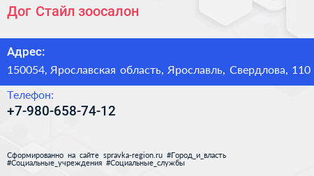 Дог Стайл, зоосалон по адресу 150054, Ярославская область, Ярославль, Свердлова, 110 в дальнейшем Организация, размещена в следующих категориях: