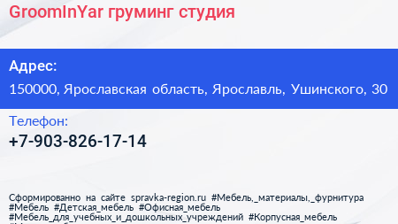 GroomInYar, груминг-студия по адресу 150000, Ярославская область, Ярославль, Ушинского, 30 в дальнейшем Организация, размещена в следующих категориях:
