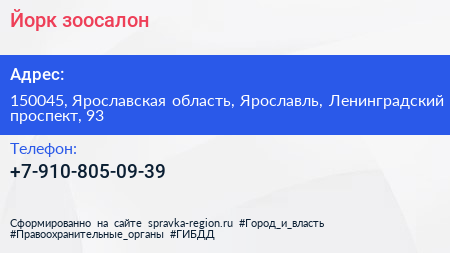 Йорк, зоосалон по адресу 150045, Ярославская область, Ярославль, Ленинградский проспект, 93 в дальнейшем Организация, размещена в следующих категориях: