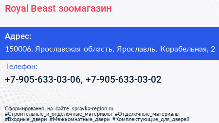 Royal Beast, зоомагазин по адресу 150006, Ярославская область, Ярославль, Корабельная, 2 в дальнейшем Организация, размещена в следующих категориях: