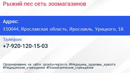 Рыжий пес, сеть зоомагазинов по адресу 150044, Ярославская область, Ярославль, Урицкого, 18 в дальнейшем Организация, размещена в следующих категориях: