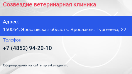 Созвездие, ветеринарная клиника по адресу 150054, Ярославская область, Ярославль, Тургенева, 22 в дальнейшем Организация, размещена в следующих категориях: