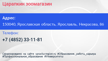 Царапкин, зоомагазин по адресу 150040, Ярославская область, Ярославль, Некрасова, 86 в дальнейшем Организация, размещена в следующих категориях: