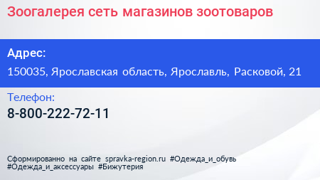 Зоогалерея, сеть магазинов зоотоваров по адресу 150035, Ярославская область, Ярославль, Расковой, 21 в дальнейшем Организация, размещена в следующих категориях: