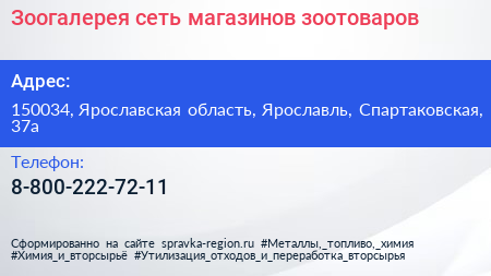Зоогалерея, сеть магазинов зоотоваров по адресу 150034, Ярославская область, Ярославль, Спартаковская, 37а в дальнейшем Организация, размещена в следующих категориях: