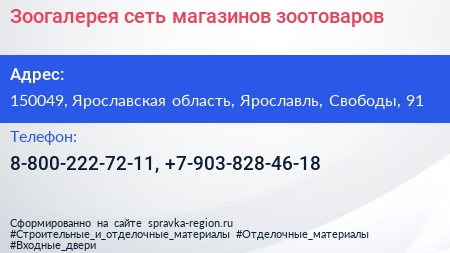 Зоогалерея, сеть магазинов зоотоваров по адресу 150049, Ярославская область, Ярославль, Свободы, 91 в дальнейшем Организация, размещена в следующих категориях: