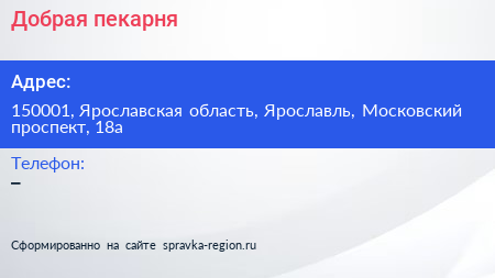 Добрая пекарня по адресу 150001, Ярославская область, Ярославль, Московский проспект, 18а в дальнейшем Организация, размещена в следующих категориях: