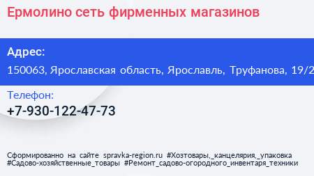 Ермолино, сеть фирменных магазинов по адресу 150063, Ярославская область, Ярославль, Труфанова, 19/2 в дальнейшем Организация, размещена в следующих категориях: