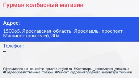 Гурман, колбасный магазин по адресу 150065, Ярославская область, Ярославль, проспект Машиностроителей, 30а в дальнейшем Организация, размещена в следующих категориях:
