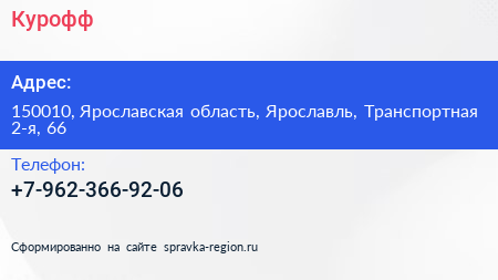 Курофф по адресу 150010, Ярославская область, Ярославль, Транспортная 2-я, 66 в дальнейшем Организация, размещена в следующих категориях: