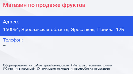 Магазин по продаже фруктов по адресу 150064, Ярославская область, Ярославль, Панина, 12Б в дальнейшем Организация, размещена в следующих категориях:
