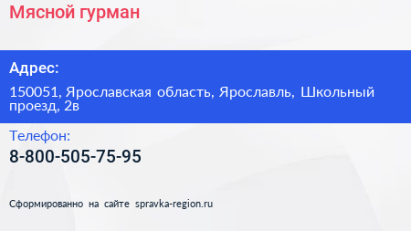 Мясной гурман по адресу 150051, Ярославская область, Ярославль, Школьный проезд, 2в в дальнейшем Организация, размещена в следующих категориях: