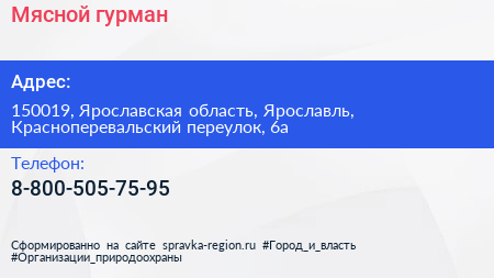 Мясной гурман по адресу 150019, Ярославская область, Ярославль, Красноперевальский переулок, 6а в дальнейшем Организация, размещена в следующих категориях: