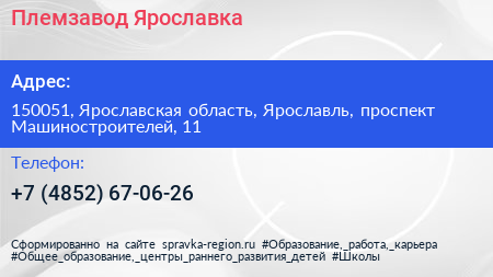 Племзавод Ярославка по адресу 150051, Ярославская область, Ярославль, проспект Машиностроителей, 11 в дальнейшем Организация, размещена в следующих категориях: