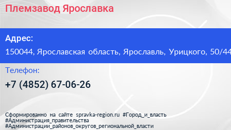 Племзавод Ярославка по адресу 150044, Ярославская область, Ярославль, Урицкого, 50/44 в дальнейшем Организация, размещена в следующих категориях: