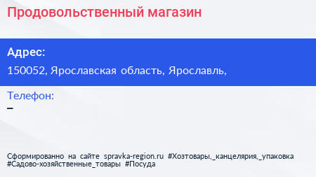 Продовольственный магазин по адресу 150052, Ярославская область, Ярославль, в дальнейшем Организация, размещена в следующих категориях:
