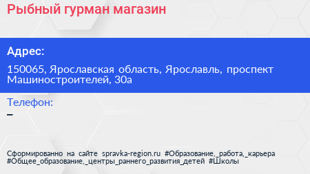 Рыбный гурман, магазин по адресу 150065, Ярославская область, Ярославль, проспект Машиностроителей, 30а в дальнейшем Организация, размещена в следующих категориях: