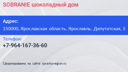 SOBRANIE, шоколадный дом по адресу 150000, Ярославская область, Ярославль, Депутатская, 5 в дальнейшем Организация, размещена в следующих категориях: