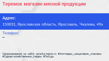 Теремок, магазин мясной продукции по адресу 150031, Ярославская область, Ярославль, Чкалова, 49а в дальнейшем Организация, размещена в следующих категориях:
