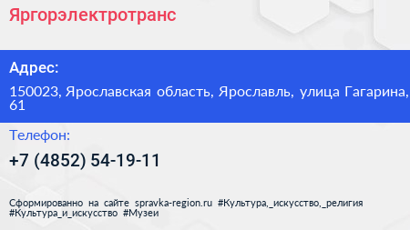 Яргорэлектротранс по адресу 150023, Ярославская область, Ярославль, улица Гагарина, 61 в дальнейшем Организация, размещена в следующих категориях: