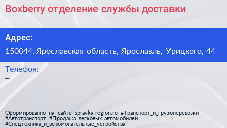 Boxberry, отделение службы доставки по адресу 150044, Ярославская область, Ярославль, Урицкого, 44 в дальнейшем Организация, размещена в следующих категориях:
