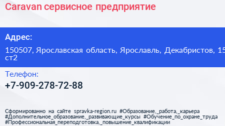 Caravan, сервисное предприятие по адресу 150507, Ярославская область, Ярославль, Декабристов, 15 ст2 в дальнейшем Организация, размещена в следующих категориях: