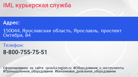 IML, курьерская служба по адресу 150044, Ярославская область, Ярославль, проспект Октября, 84 в дальнейшем Организация, размещена в следующих категориях:
