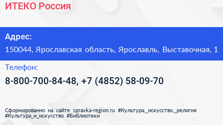 ИТЕКО Россия по адресу 150044, Ярославская область, Ярославль, Выставочная, 1 в дальнейшем Организация, размещена в следующих категориях: