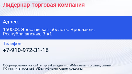 Лидеркар, торговая компания по адресу 150003, Ярославская область, Ярославль, Республиканская, 3 к1 в дальнейшем Организация, размещена в следующих категориях: