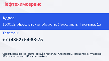 Нефтехимсервис по адресу 150052, Ярославская область, Ярославль, Громова, 1а в дальнейшем Организация, размещена в следующих категориях: