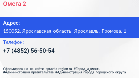 Омега-2 по адресу 150052, Ярославская область, Ярославль, Громова, 1 в дальнейшем Организация, размещена в следующих категориях: