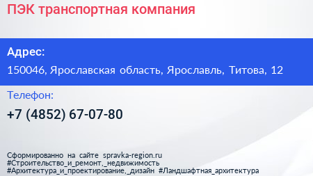 ПЭК, транспортная компания по адресу 150046, Ярославская область, Ярославль, Титова, 12 в дальнейшем Организация, размещена в следующих категориях: